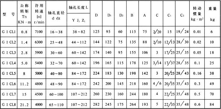 GICL型 聯軸器參數與尺寸(mm)