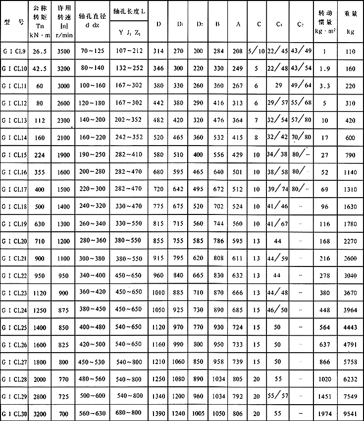 1  聯軸器重量及轉動慣量是按最小軸孔最大長度的近似值。